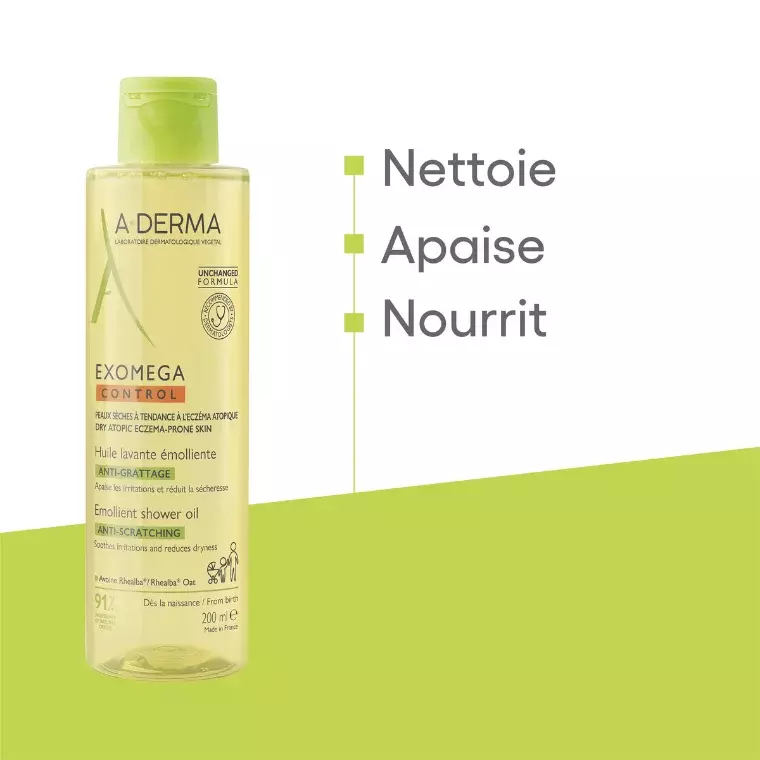 A-Derma Exomega Control Emollient Shower Oil is a gentle, lipid-replenishing cleanser specially formulated for dry, very dry, and eczema-prone skin. It cleanses without stripping while helping to soothe irritation and restore the skin’s protective barrier.
