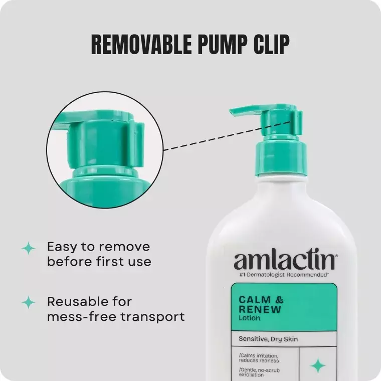 AmLactin Calm and Renew AHA Body Lotion is a dermatologist-recommended body moisturizer formulated to gently exfoliate, deeply hydrate, and soothe sensitive, dry, and rough skin. Powered by Alpha Hydroxy Acid (AHA – lactic acid) and skin-conditioning ingredients, it helps renew the skin’s surface while improving texture and tone.