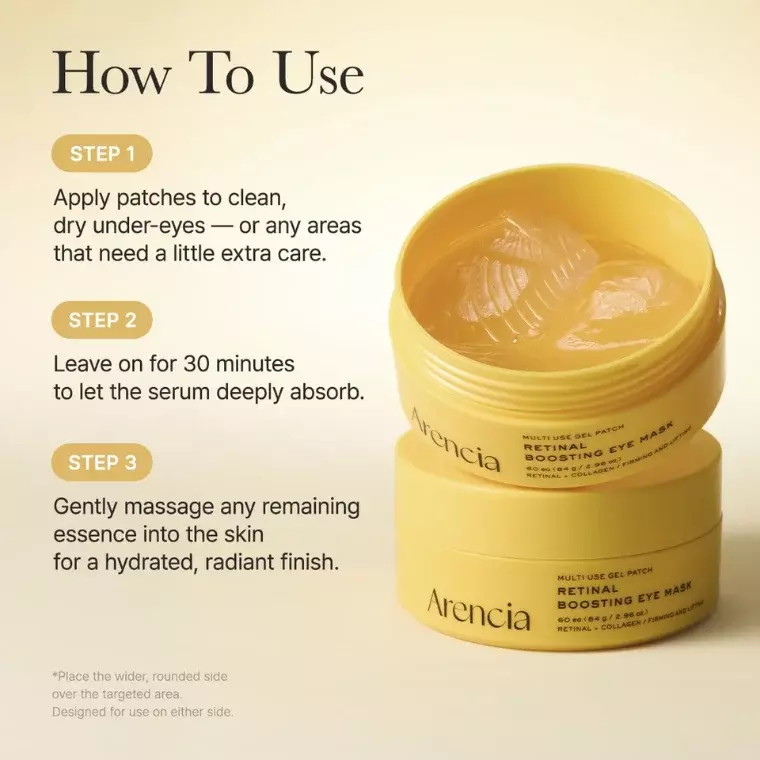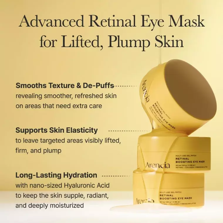 Arencia Retinal Boosting Eye Mask 84g is a targeted eye treatment designed to reduce fine lines, puffiness, and dark circles around the delicate eye area. Infused with retinal (retinaldehyde), peptides, and hydrating agents, it boosts skin regeneration, firms the under-eye area, and restores a youthful, radiant look.