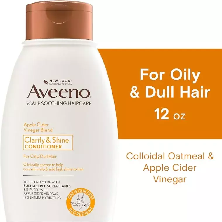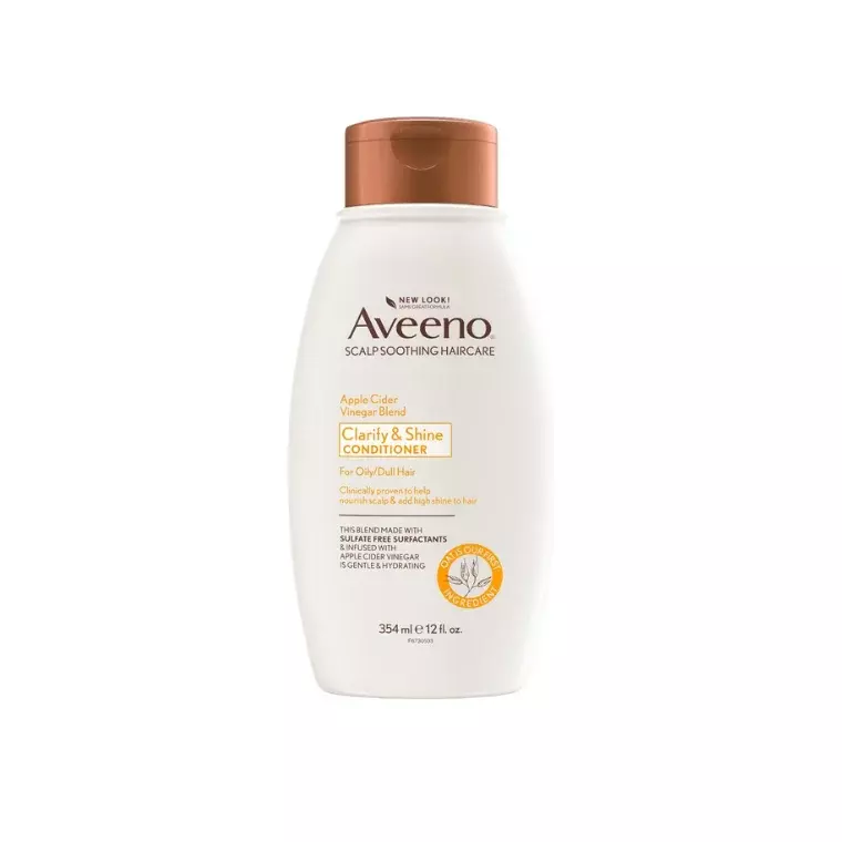 Aveeno Apple Cider Vinegar Clarifying & Shine Conditioner is a lightweight conditioner designed to detangle, smooth, and restore shine while complementing clarifying shampoos. Infused with apple cider vinegar and oat extract, it helps improve hair softness and manageability without weighing hair down.