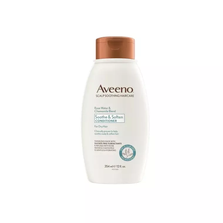 Aveeno Rose Water & Chamomile Blend Soothe & Soften Conditioner is a gentle, nourishing conditioner designed to soften hair while calming the scalp. Infused with rose water, chamomile, and oat extract, it helps improve hair manageability and leaves it feeling smooth, light, and refreshed.