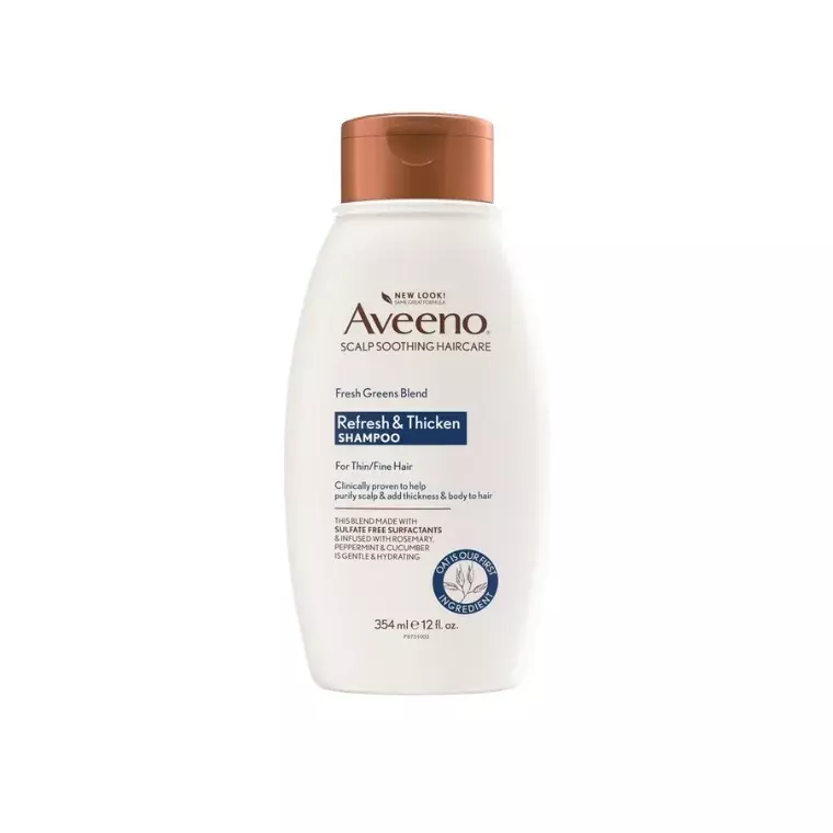 Aveeno Scalp Soothing Fresh Greens Blend Shampoo is a gentle, refreshing formula designed to cleanse and rebalance the scalp while keeping hair soft and healthy. Infused with oat extract and fresh greens blend, it helps soothe scalp discomfort and remove excess oil without stripping moisture.