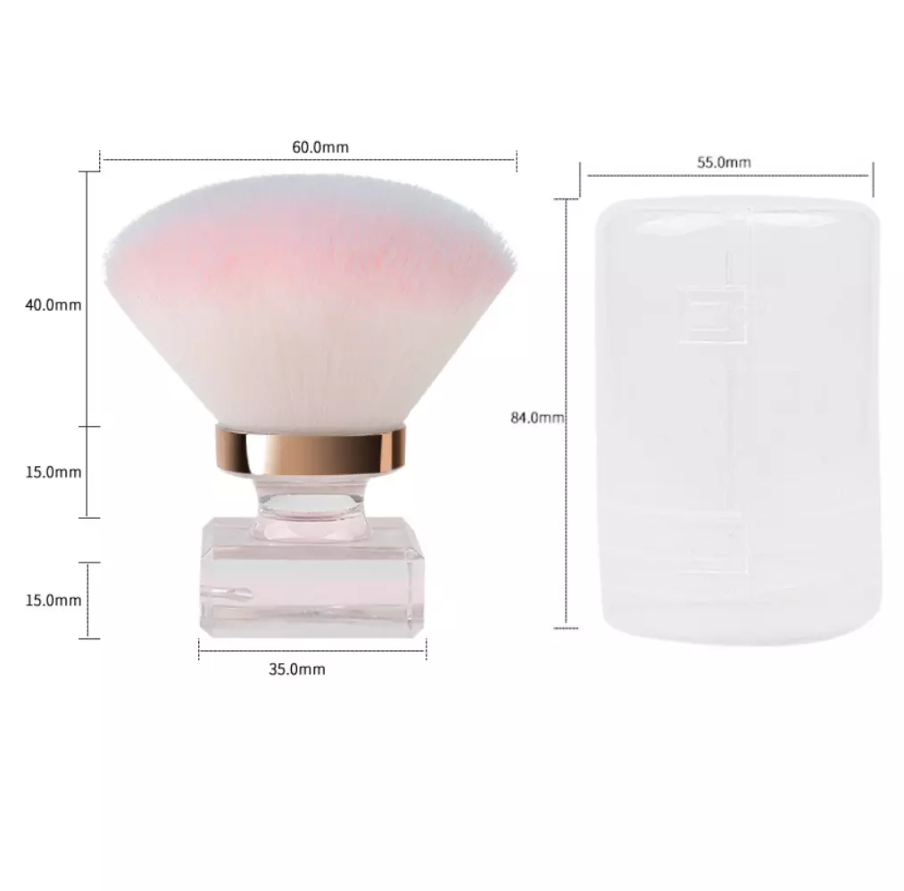 This synthetic hair nail brush features a soft yet durable fluffy head designed for gentle nail care and detailed cleaning. Crafted with a sturdy plastic handle, the quadrate-shaped fan brush offers comfortable grip and precise control during use. Ideal for nail grooming and light face application, it delivers reliable performance with a sleek, professional look. Custom branding options are available, including silk screen printing, transfer stickers, labeling, and digital printing, making it suitable for private label and bulk orders.