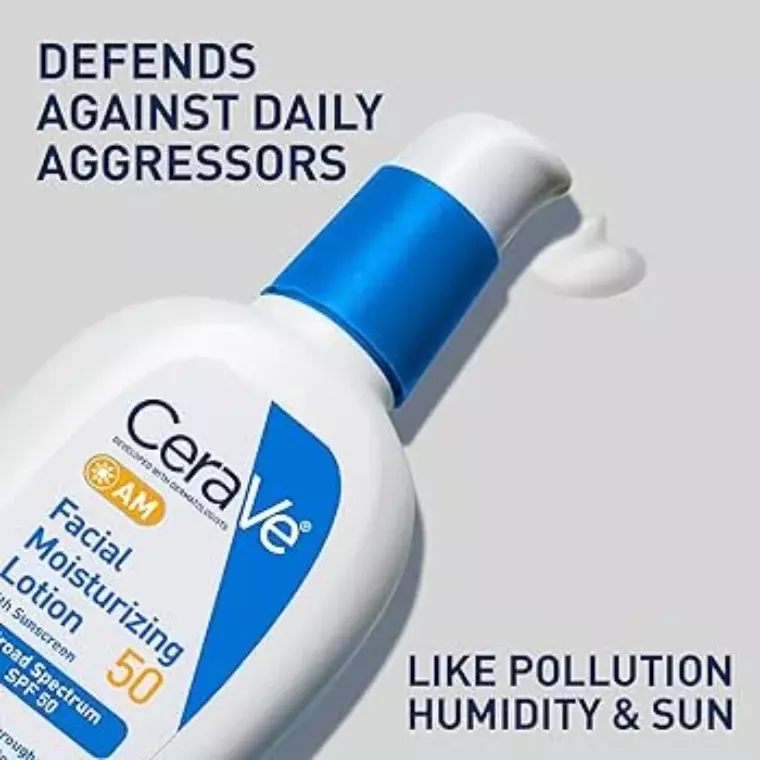 CeraVe AM Facial Moisturizing Lotion SPF 50 is a lightweight daily moisturizer that provides broad-spectrum sun protection while hydrating and restoring the skin barrier. Developed with dermatologists, it combines essential ceramides with sunscreen to protect and nourish the skin throughout the day.