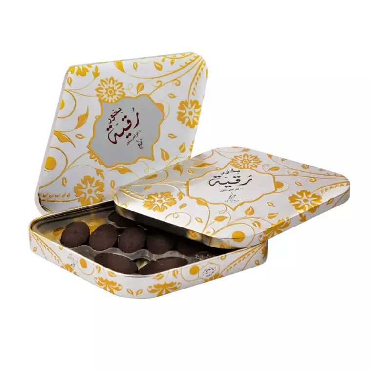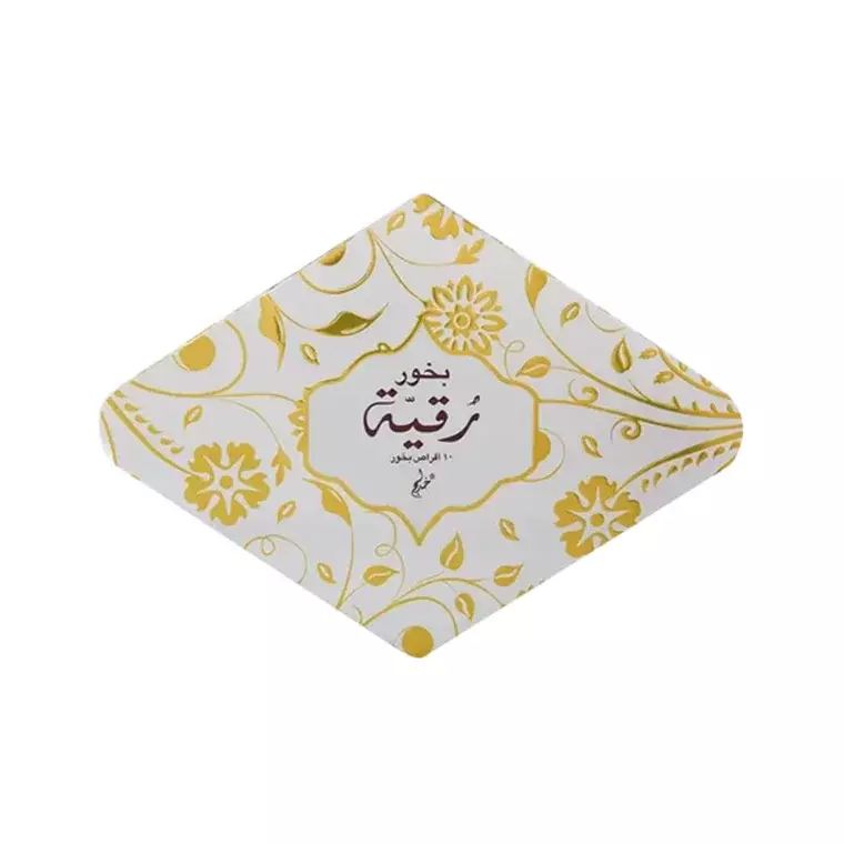 Bukhoor Rukaiya blends smoky oud with soft florals and warm amber to create a deeply comforting and sophisticated scent. As it burns, it releases layers of rich aroma that purify the air and enhance the mood of any space.