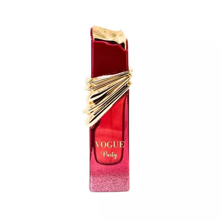 Vogue Party opens with a lively burst of sparkling citrus and juicy red berries that instantly uplift the senses and set a festive mood. The heart reveals delicate floral facets of jasmine and rose, adding a feminine elegance and refined charm. The base of vanilla, warm amber, and musk gives depth and sensuality, creating a beautifully balanced scent that transitions from day to night with ease.