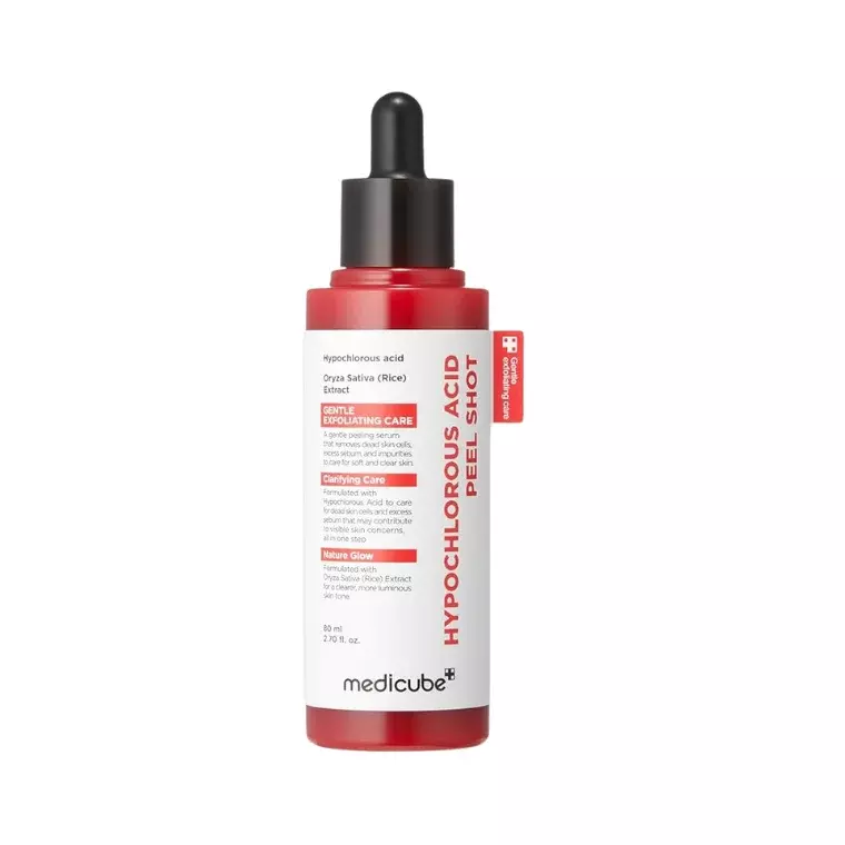 Medicube Hypochlorous Acid Peel Shot is a gentle exfoliating treatment designed to refine skin texture while helping calm and purify the skin. Formulated with hypochlorous acid and mild peeling ingredients, it helps remove dead skin cells, unclog pores, and support clearer, smoother-looking skin without excessive irritation.Key Benefits