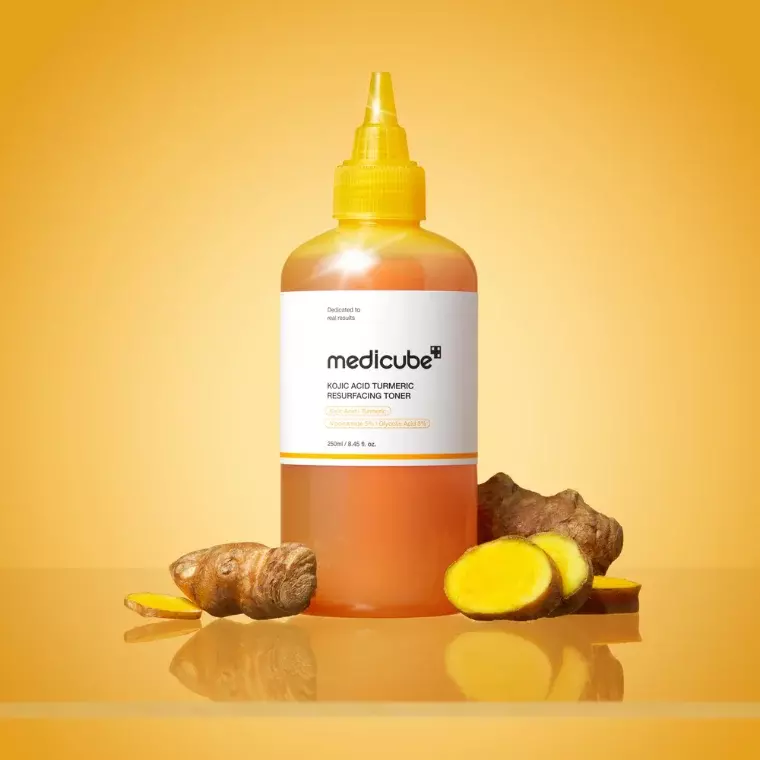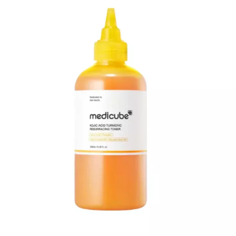 Medicube Kojic Acid Turmeric Resurfacing Toner 250ml is a brightening and exfoliating toner formulated to refine skin texture, even out skin tone, and reveal a radiant complexion. Its lightweight, non-sticky formula is suitable for daily use.