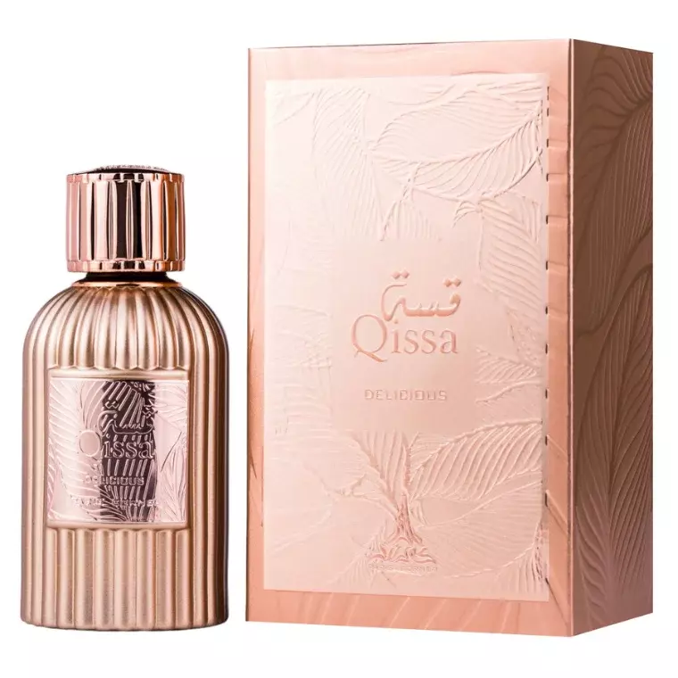 Qissa Delicious combines bright fruitiness with soft florals and delectable sweet nuances. The juicy red berries and pear at the opening create an inviting freshness, while the base of vanilla and caramel wraps the scent in comforting warmth, making this fragrance both joyful and sensual.