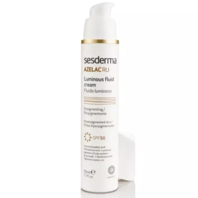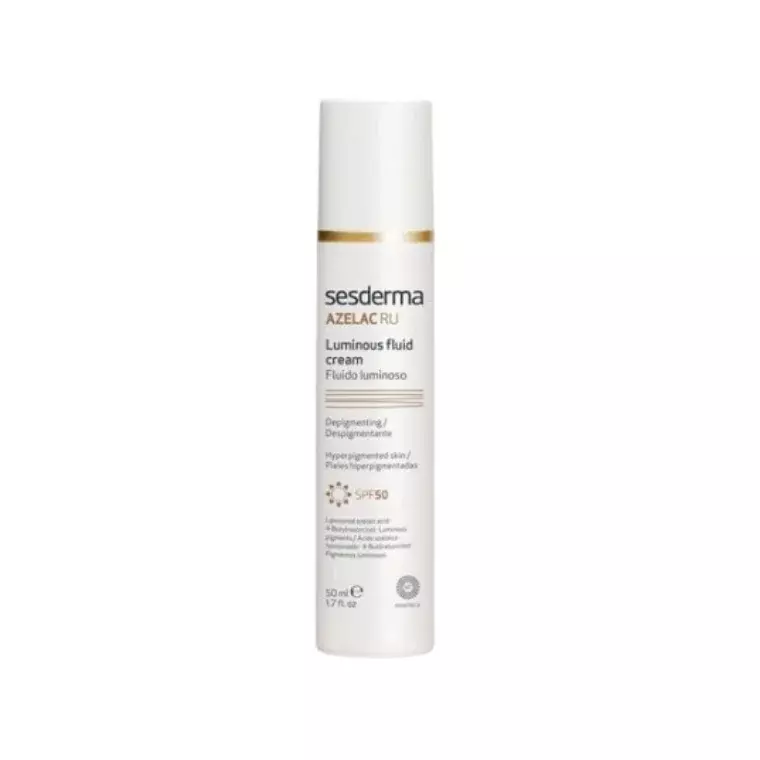 Sesderma Azelac RU SPF50 Glowing Fluid is a brightening sunscreen that protects the skin while helping to reduce dark spots and uneven skin tone. With advanced depigmenting actives and high sun protection, it works to prevent and correct pigmentation while giving the skin a healthy, radiant glow.