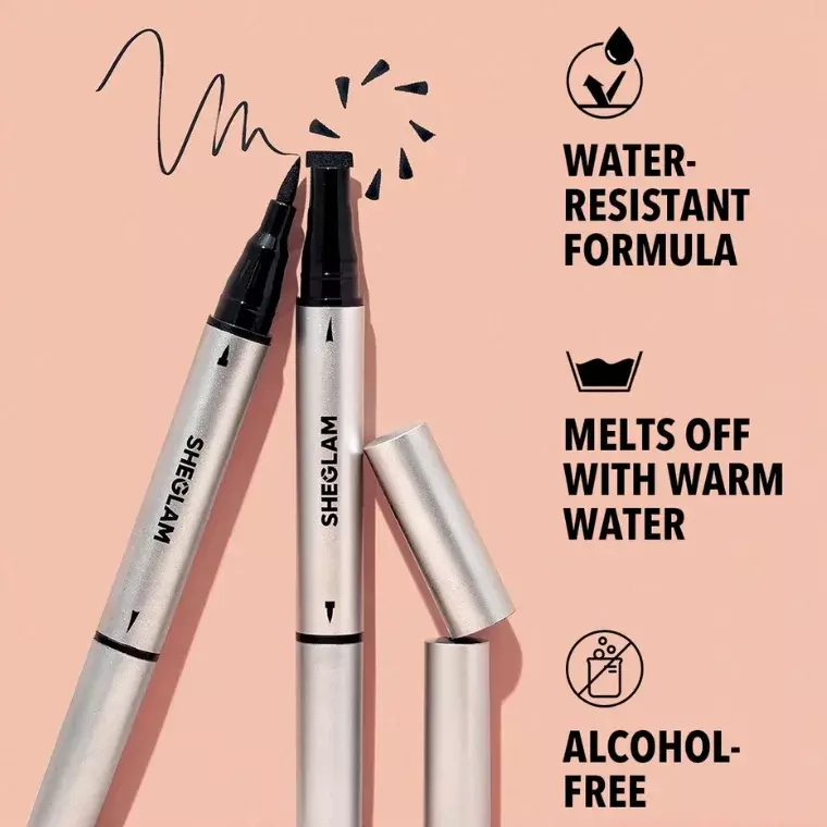 The SHEGLAM Wing It Waterproof Liner Duo is a dual-ended eyeliner designed to make creating sharp, symmetrical winged looks effortless. One side features a precise liquid liner tip for clean definition, while the other side includes a wing stamp that helps you achieve the perfect flick in seconds.