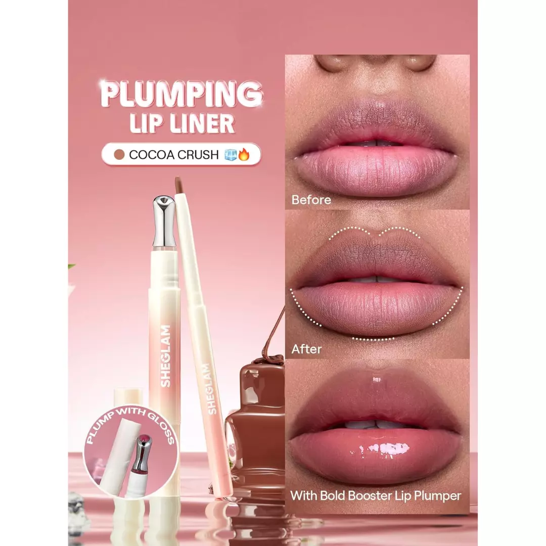 The Sheglam Bold Booster Plumping Lip Liner in Cocoa Crush defines and enhances your lips with a rich cocoa-brown tone while delivering a subtle plumping effect. Its creamy, smooth-glide formula allows for precise application and effortless blending, helping you contour and slightly overline for a fuller-looking pout. Long-lasting and comfortable, it creates the perfect base for lipstick or gloss.Key Benefits