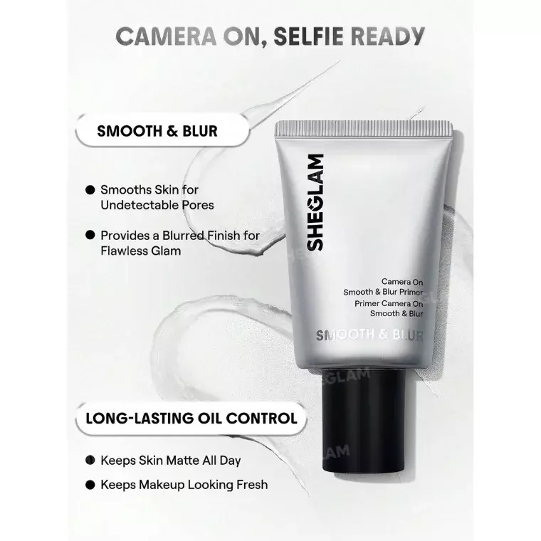 SHEGLAM Camera On Smooth & Blur Primer is a skin-smoothing primer designed to minimize pores, blur imperfections, and create a flawless base for makeup application. It helps improve makeup longevity while giving the skin a soft-focus finish.