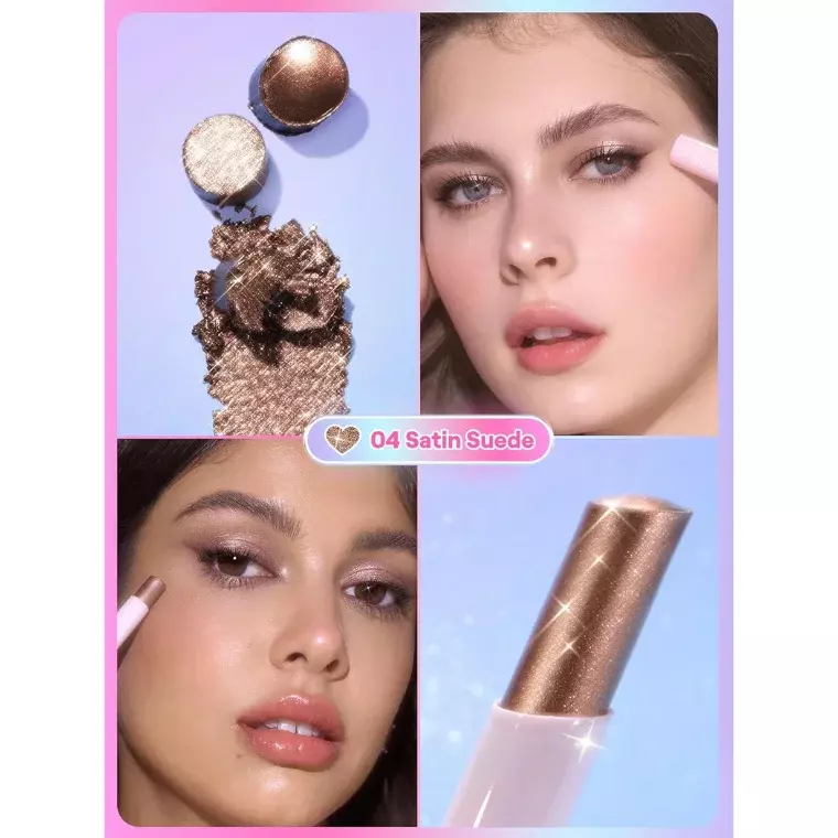 SHEGLAM Crystal Jelly Glaze Eyeshadow Stick #Satin Suede is a creamy, easy-to-use eyeshadow stick that delivers a shimmery, glossy finish with a cool-toned glow. Its smooth, jelly-like texture glides effortlessly for quick and mess-free eye looks.