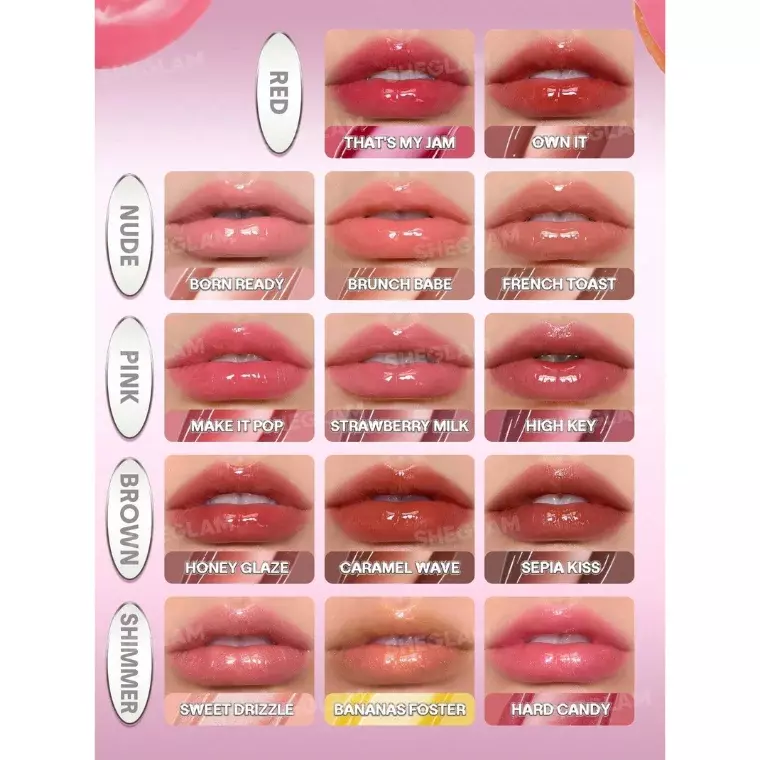 SHEGLAM Glass Lock Air Gloss #That's My Jam is a lightweight lip gloss that delivers a high-shine, glass-like finish with a soft, flattering tint. Its airy formula glides smoothly, giving lips a fuller and more polished look without stickiness.