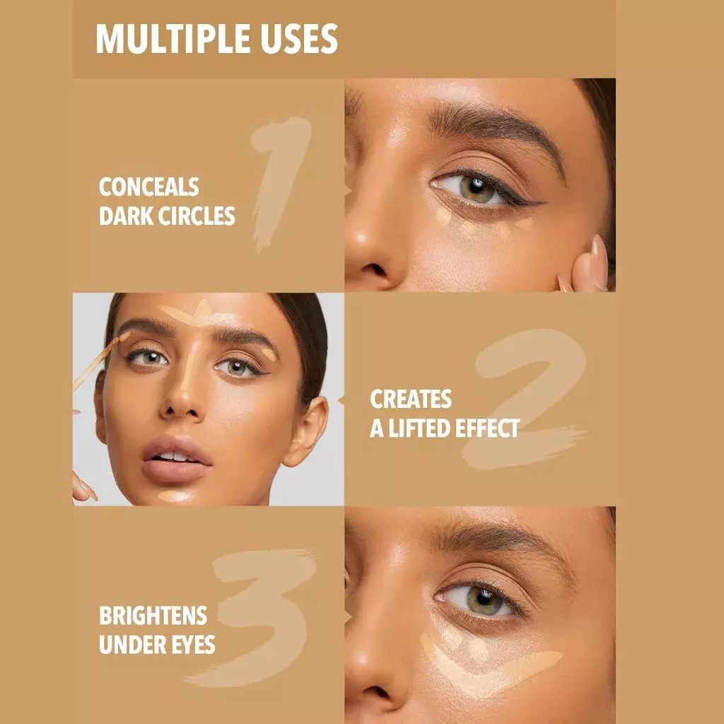 • Full Coverage: Conceals imperfections, dark circles, and discoloration with one swipe.• Long Wearing: Up to 12 hours of lasting, crease‑resistant coverage.