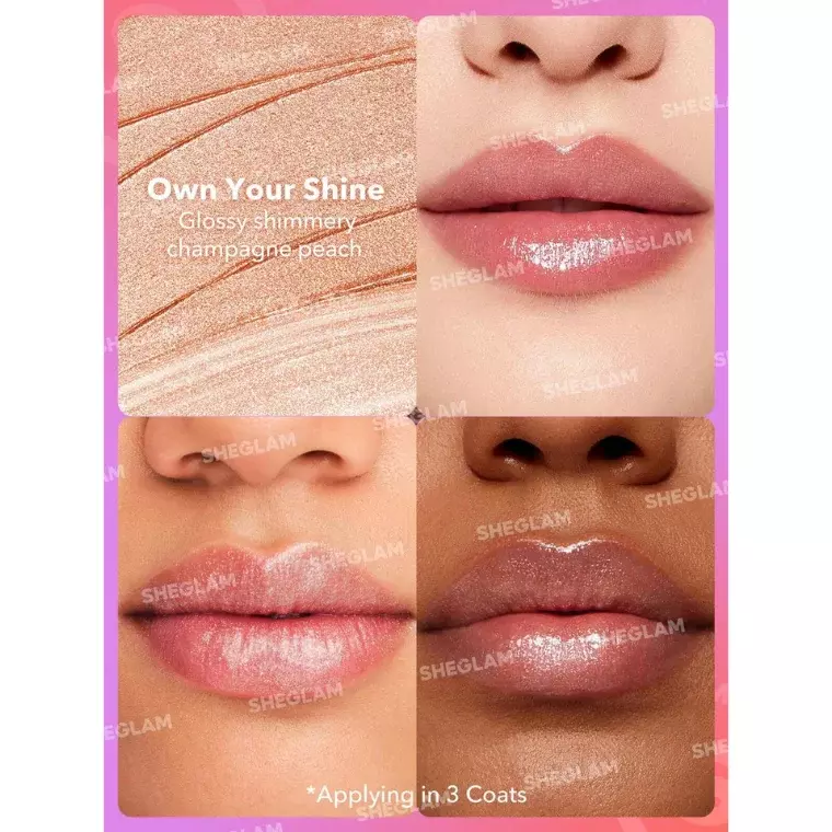 The SHEGLAM Mirror Kiss High-Shine Lipstick (Own Your Shine) is a glossy lipstick that combines the shine of a lip gloss with the comfort of a lip balm and the color payoff of a lipstick. It features a silky jelly texture that glides smoothly onto the lips, delivering a high-shine, mirror-like finish.