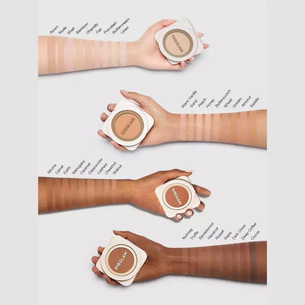 The Sheglam Skin-Focus High Coverage Powder Foundation in Fair delivers a flawless, full-coverage matte finish with a natural look that blurs imperfections. Its silky, velvety formula glides on smoothly and sets makeup while reducing shine, making it ideal for normal to oily skin types. Buttercream offers a warm-neutral tone that helps even out skin tone and provides long-lasting, photo-ready coverage throughout the day. Lightweight and comfortable, this powder foundation leaves skin looking polished and refined without feeling cakey.