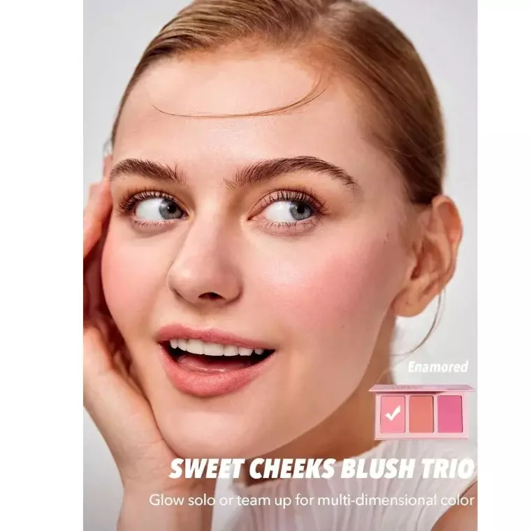 SHEGLAM Sweet Cheeks Blush Trio in Enamored is a 3-shade powder blush palette designed to give your cheeks a soft, fresh, and multidimensional glow. It features a mix of flattering tones—soft grape, peony, and dusty pink—that can be used individually or blended together for a customized look.